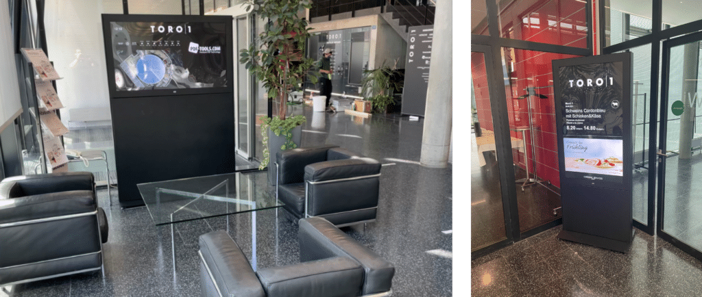 Digitale Beschilderung und Besucherinformationssysteme unterstützen effizient die Prozesse auf einem Areal und geben den Besucherinnen und Besuchern rasche Orientierung. Sie sind modular aufgebaut und günstig im Unterhalt, da neue Informationen auf Knopfdruck und gleichzeitig auf allen Bildschirmen distribuiert werden können. Das mühsame, zeitintensive und teure Drucken und Anbringen von Klebefolien entfällt.